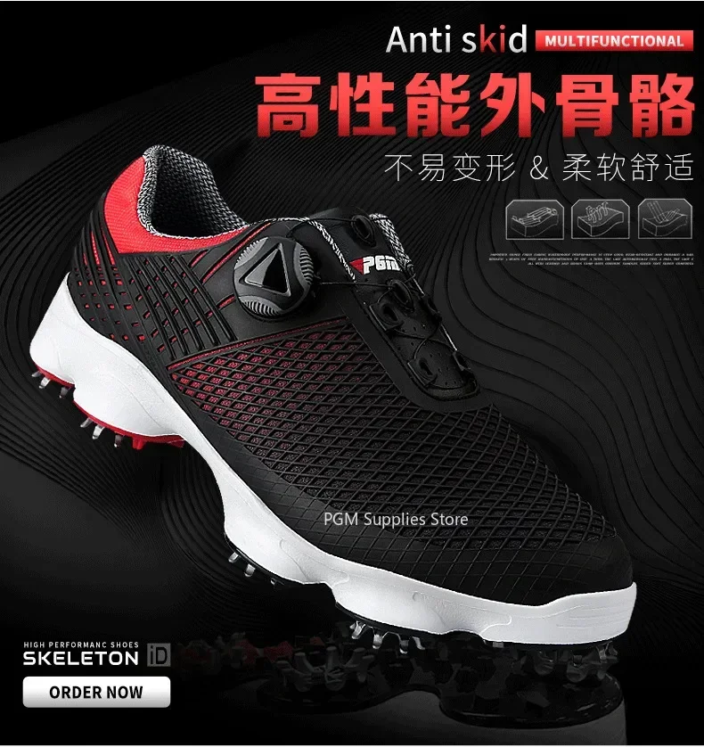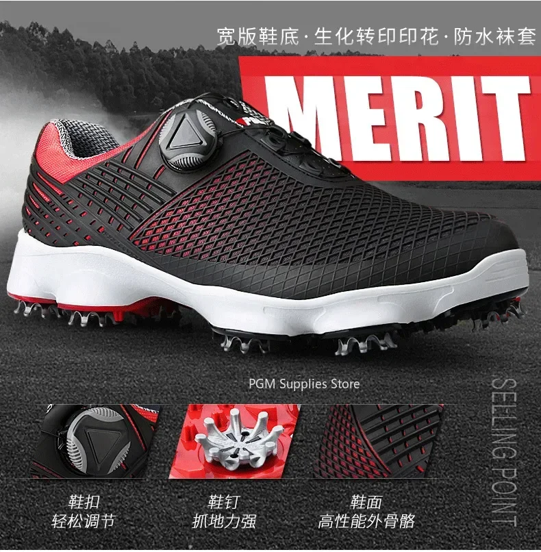 PGM Golf Shoes Mens Comfortable Knob Buckle Golf Men’S Shoes Waterproof Genuine Leather Color : black – Shoe Size : 44